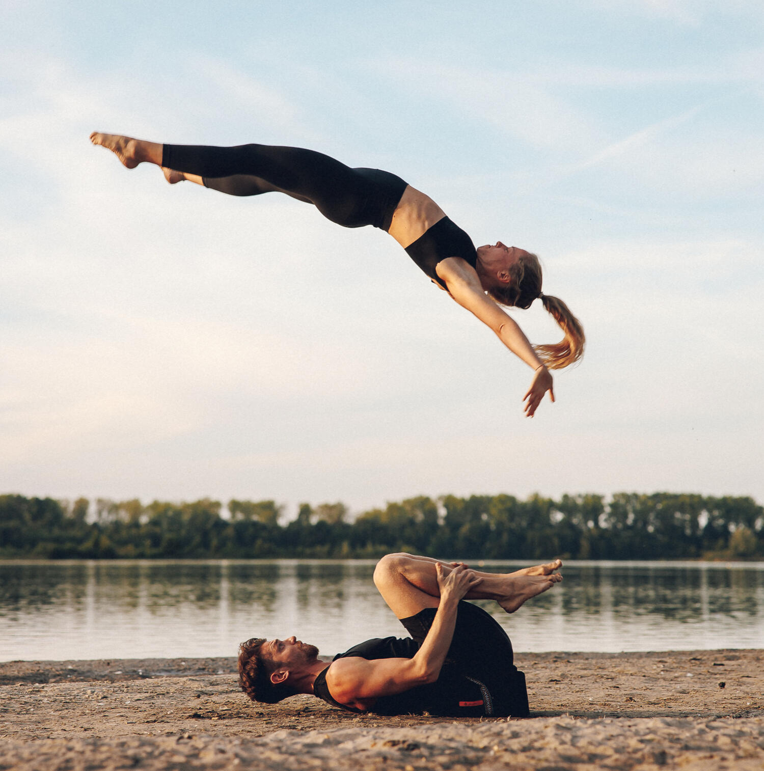 Acroyoga verbindet Elemente der Akrobatik mit der Achtsamkeit des Yoga und bringt Menschen auf spielerische Weise zusammen. Der Fokus liegt dabei nicht auf reiner Muskelkraft, sondern auf präziser Technik, klarer Kommunikation und gegenseitigem Vertrauen. Deshalb ist Acroyoga für alle geeignet – unabhängig von Alter, Geschlecht oder Körpergröße. Durch das Zusammenspiel von Balance und Bewegung entstehen fließende Abläufe, die die Flexibilität und Verbindung stärken – und dabei eine Menge Spaß machen!